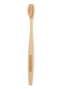 -A escova de dentes de Corpore Sano é elaborada com madeira de Bambu Mossô e filamentos de fibra de bambu que cuidam os dentes e as gengivas.