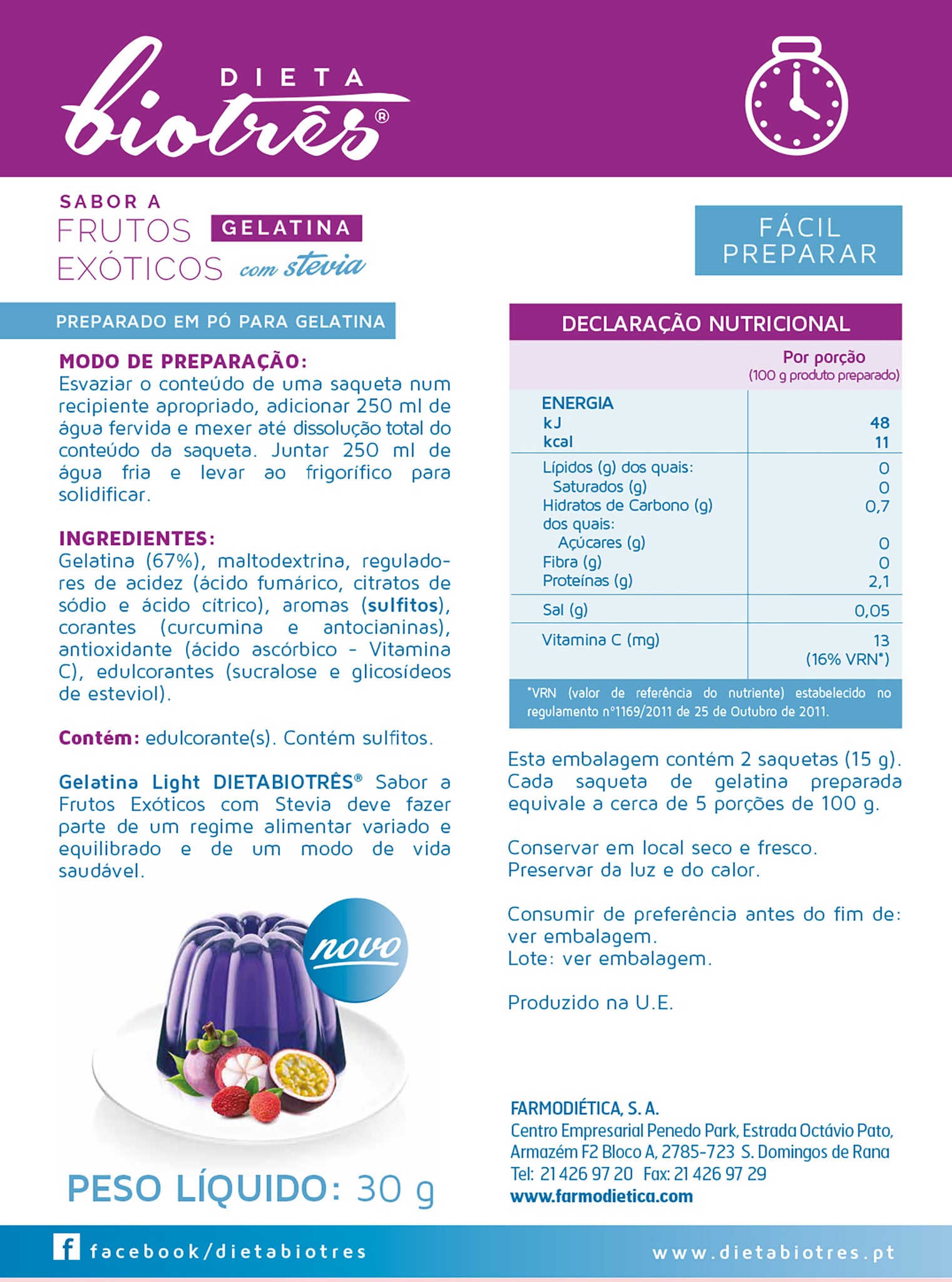 Gelatina Light Frutos Exóticos 2*15gr - Biotrês