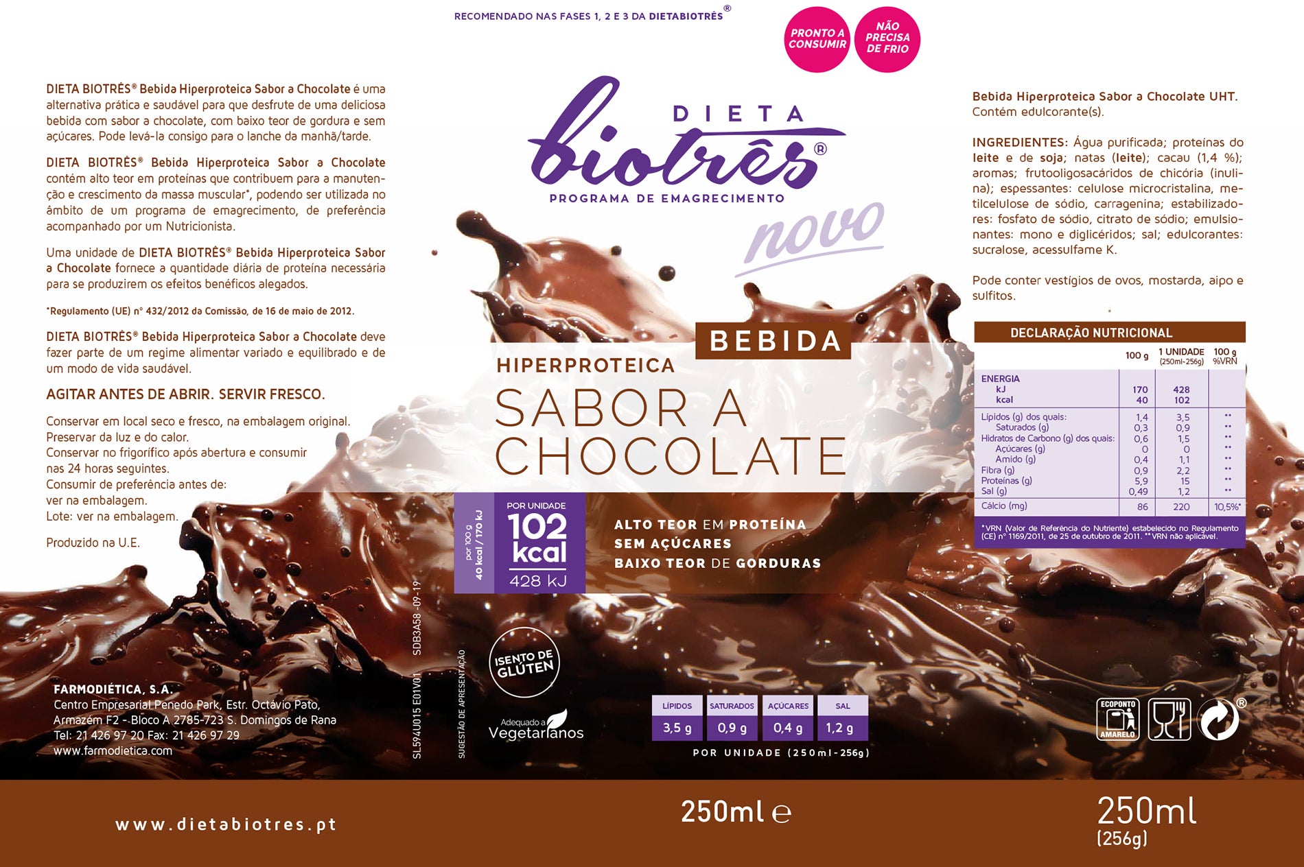 Bebida Hiperproteica Chocolate 2x250ml - Dieta Biotrês