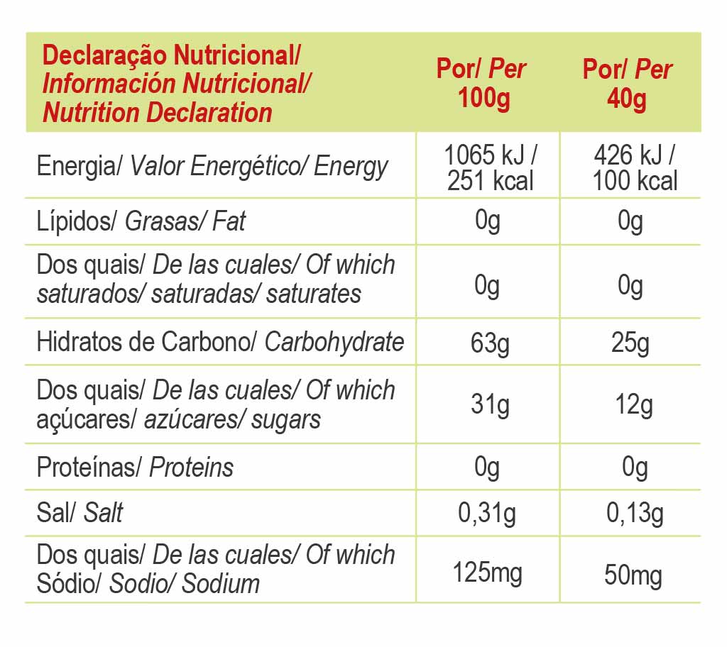 - Maltodextrina, água, frutose em pó, aroma, sal marinho.