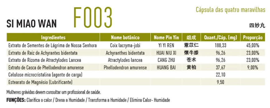 F003 Si Miao Wan 100 Cápsulas - Fitoki