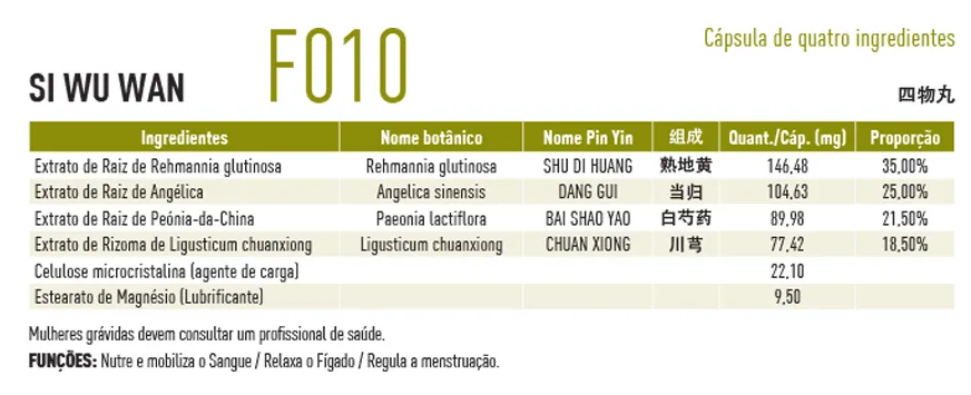 F010 Si Wu Wan 100 Cápsulas - Fitoki