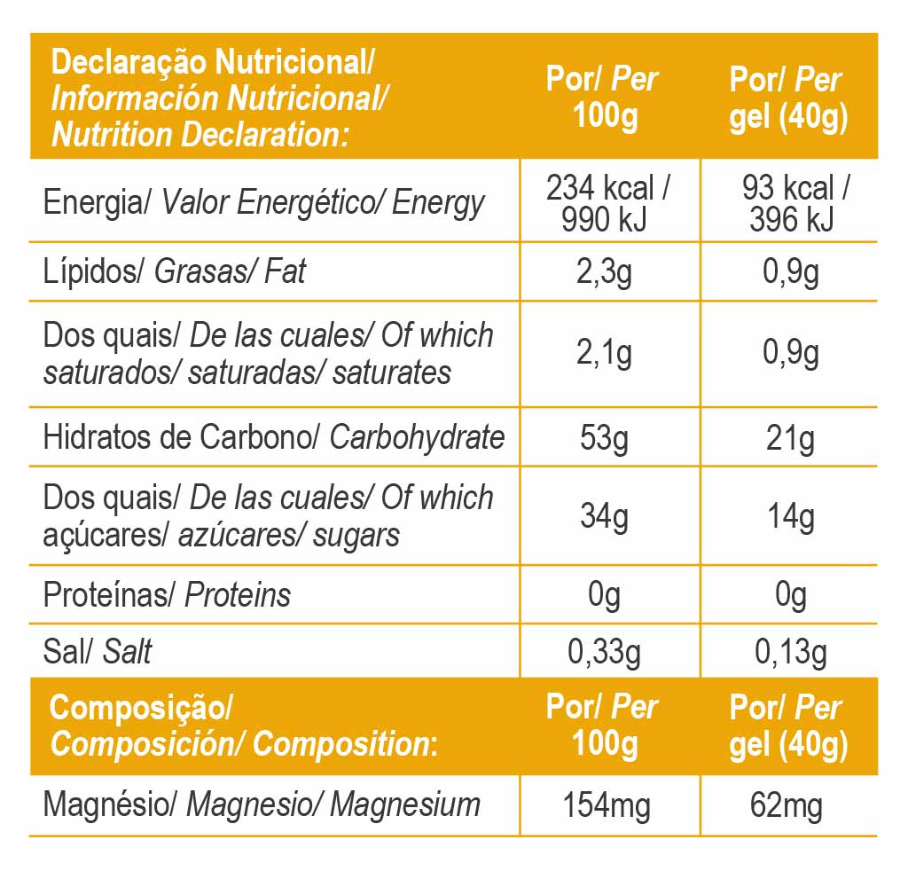 Consumir 1 gel por hora de exercício de endurance; é imprescindível beber no mínimo 250 ml de água por cada gel consumido.