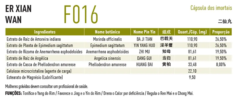 F016 Er Xian Wan 100 Cápsulas - Fitoki