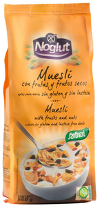 -Uma mistura de flocos de milho tostados, banana, ameixa e arando vermelho, isenta de glúten, de ovo, de lactose e de derivados lácteos.