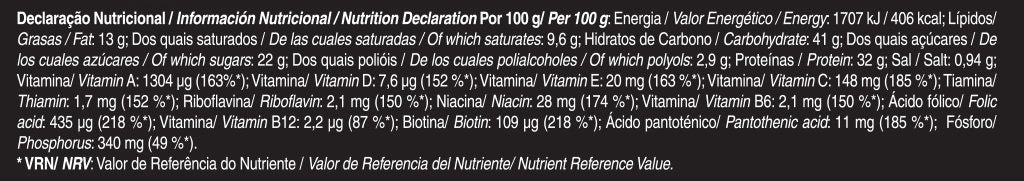 - Barra hiperproteica que conjuga proteína, hidratos e vitaminas.